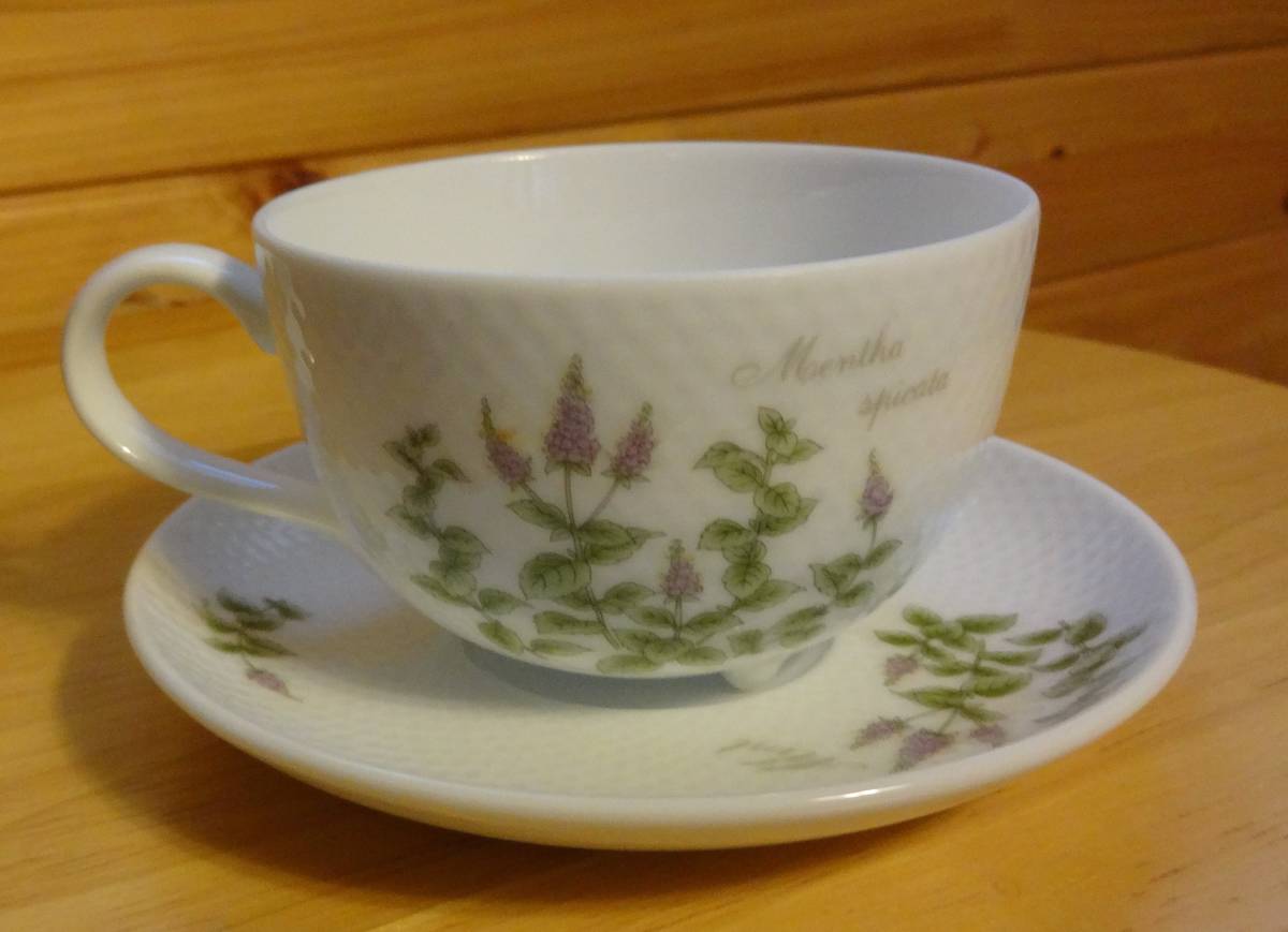 - AKETHI、Mintミント柄のコーヒー(紅茶)カップ&ソーサー1客、ハーブティー用に