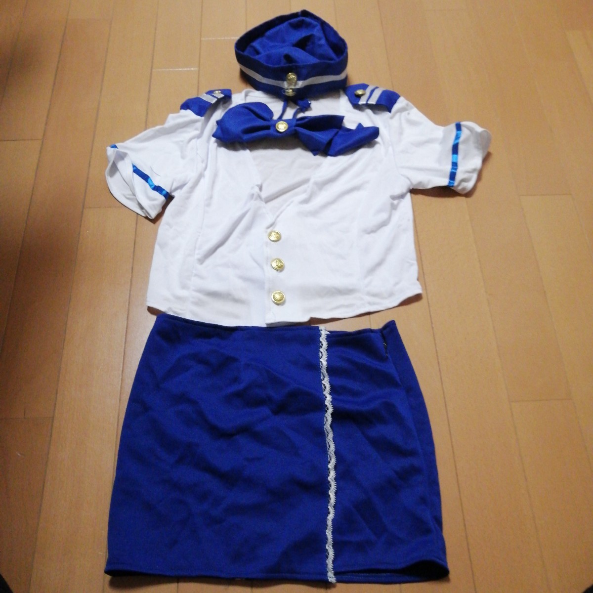 - 警察 ポリス 白 制服風コスプレ帽子 リボントップス スカート