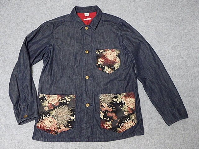 - 備中倉敷 倉 インディゴ デニム カバーオール 美品 Mサイズ 和柄 №25658 赤裏地 日本製 エターナル