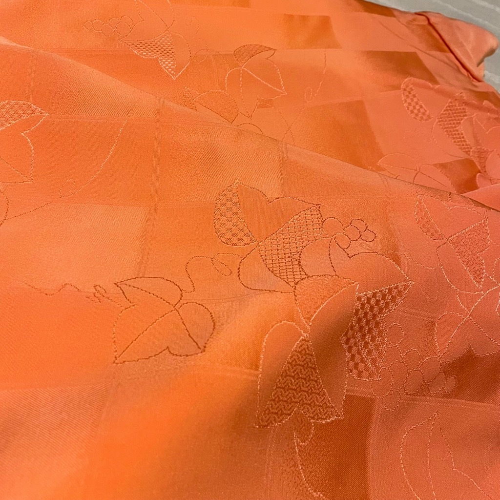 > アンティーク 着物 サーモンピンク 葡萄柄 ぶどう 透かし模様 格子 和装 身丈158cm モダン レトロ 大正 ビンテージ お祝い着 訪問着 正月