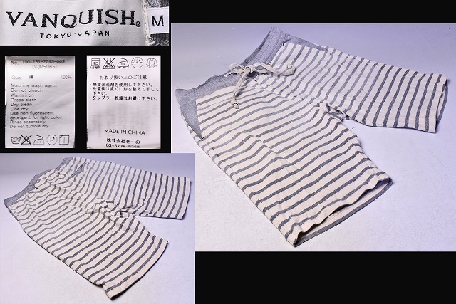 > VANQUISH ★ ヴァンキッシュ ★ 短パン ★ VJP5065 ★ Mサイズ ★ グレーのストライプ ★ スウェット素材 ★ 綿100% ★ 街着 ★ 中古品 ★