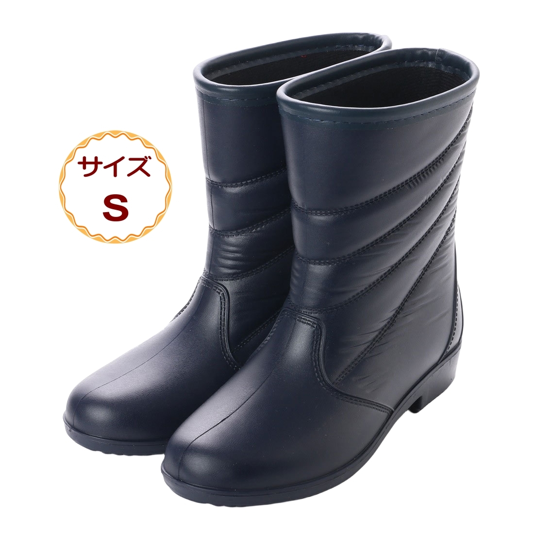 > レディース ミドル レインブーツ 防寒ブーツ レインシューズ 完全防水 防寒 積寒地 保温 ネイビー 紺 16603-nav-S ( 22.0 ~ 22.5cm )