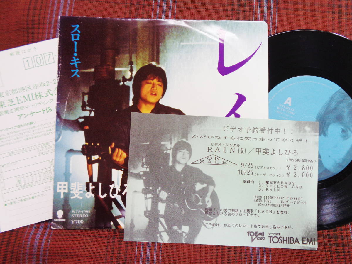 - e#5440◆EP◆ 甲斐よしひろ - レイン / スロー・キス ハガキ、チラシ付 松竹富士映画 「この愛の物語」 サウンドトラック WTP-17981