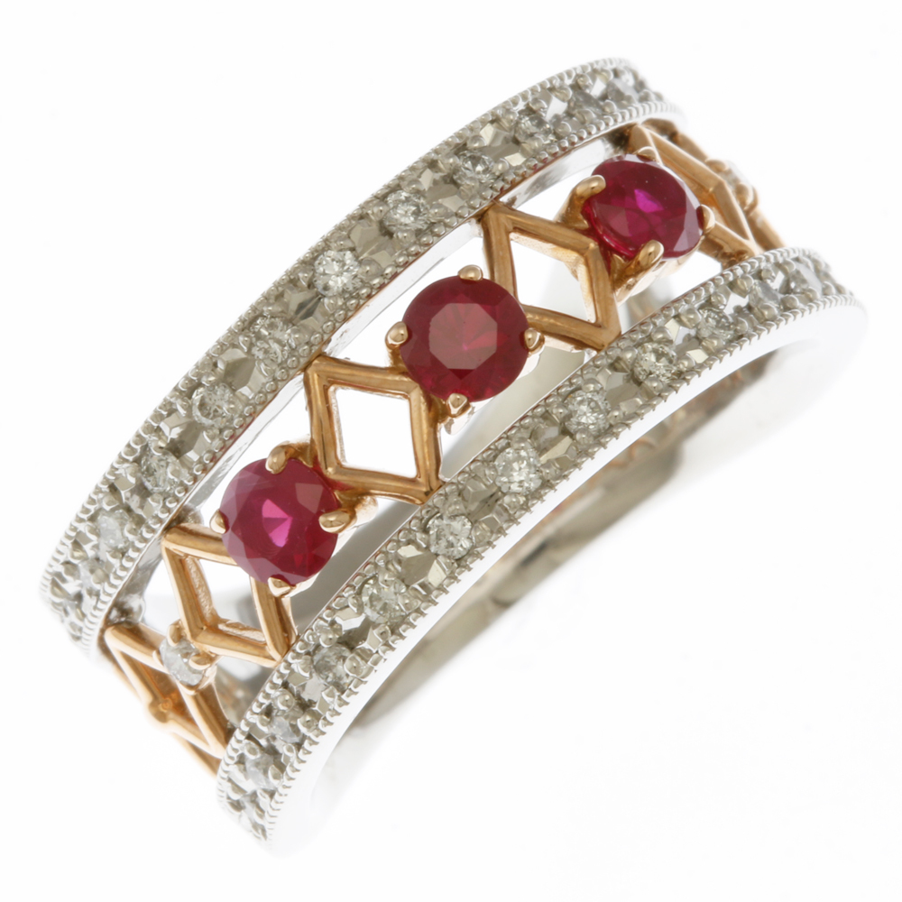 - リング 指輪 14号 透かし ミルグレイン 幅広 Pt900プラチナ K18ピンクゴールド ルビー 0.60ct ダイヤモンド 0.28ct レディース 中古 美品