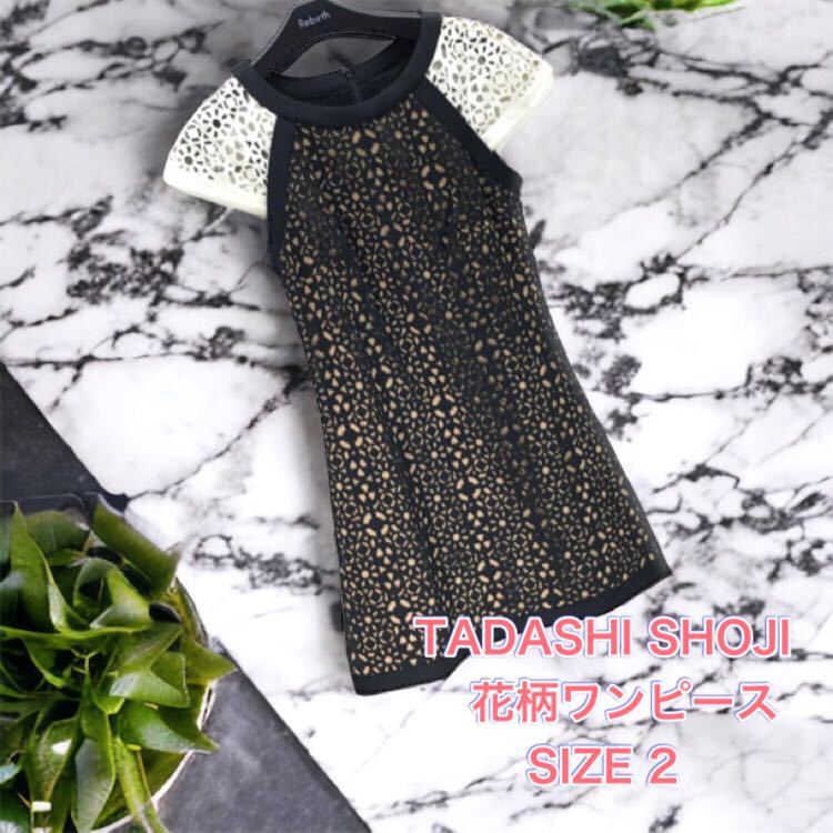 - タダシショージ 花柄 ワンピース 刺繍 総レース ブラック ホワイト 2 Mサイズ ドレス パーティ tadashi shoji
