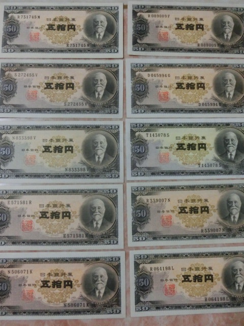 - ★ 日本銀行券B号50円 高橋50円 極美品 10枚セット ★ No.330