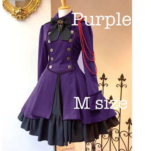 - 膝丈ワンピース 軍服 ロリータ ワンピース ゴスロリ ドレス ダンス クリスマス パーティ 衣装 パープル 紫 M