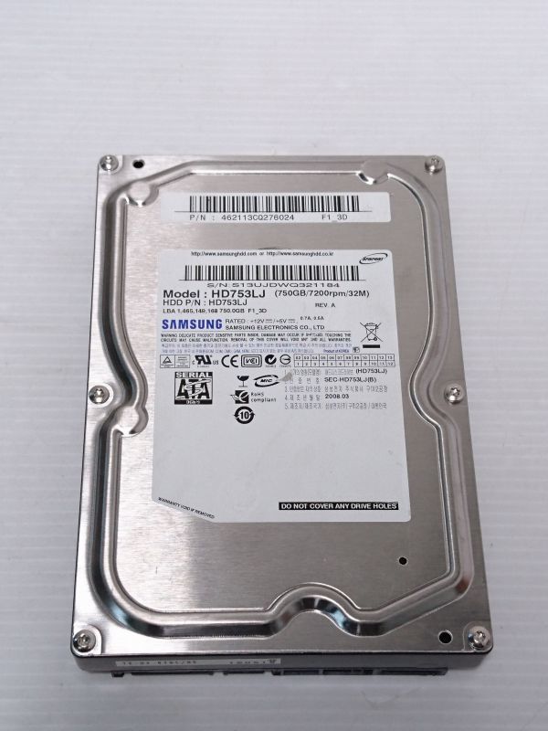 > ★ジャンク品★SAMSUNG(サムスン) ハードディスク HDD HD753LJ 750GBx1 3.5インチ★計1枚 ★