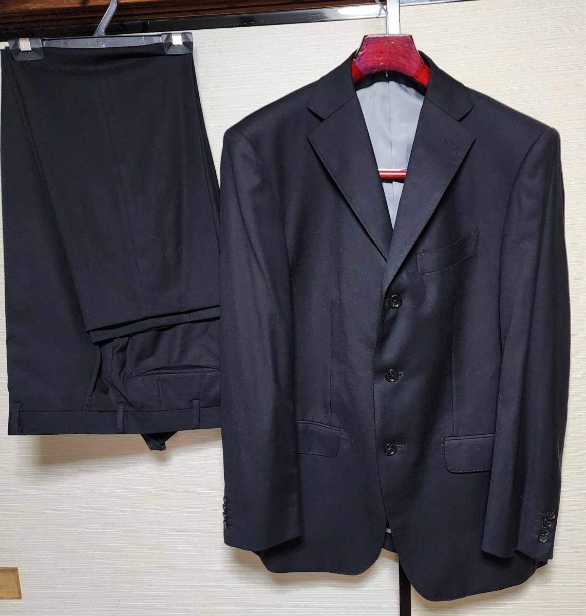 - ブラック フォーマル 薄手ウール スーツメンズセットアップ M背抜き