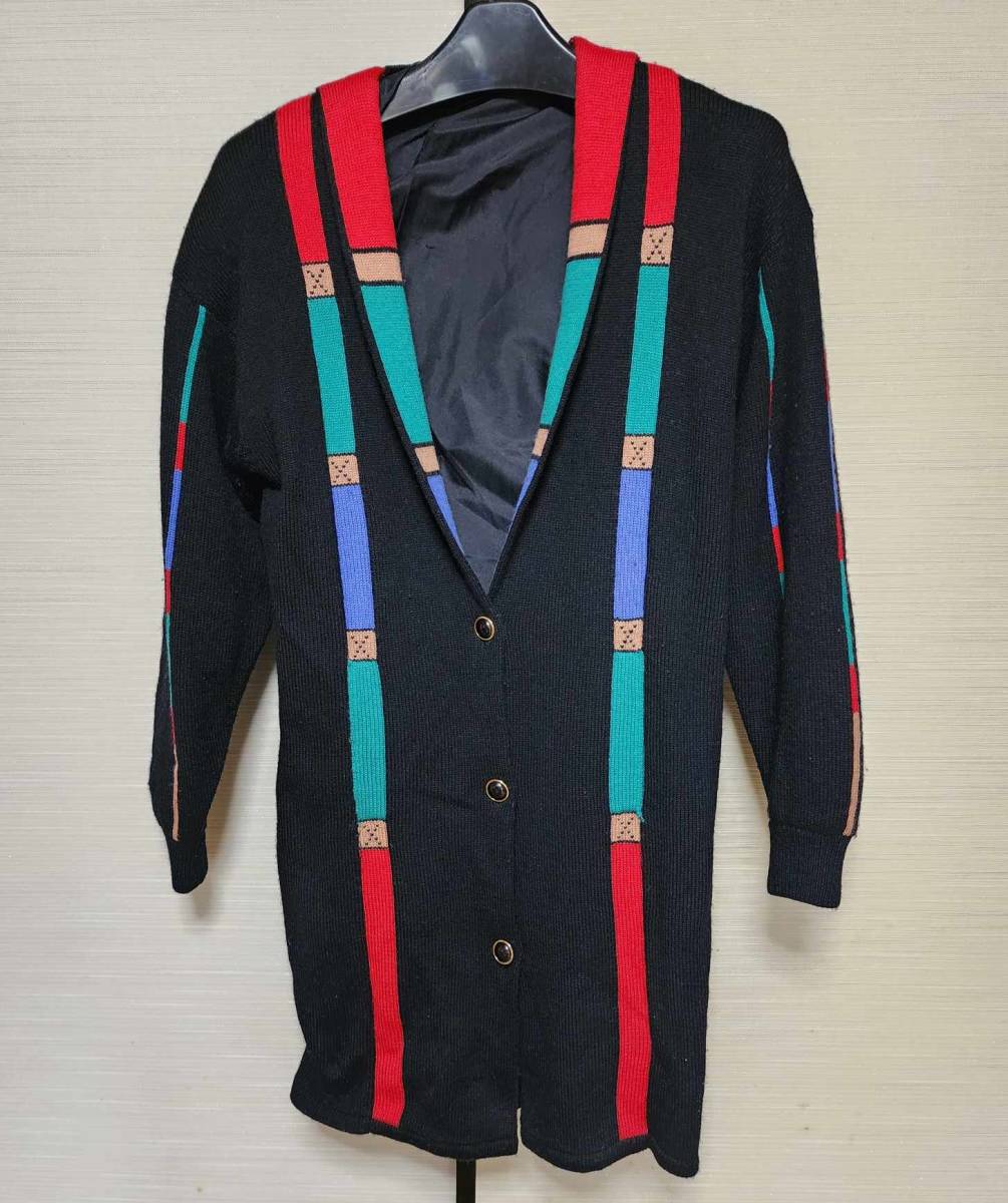 - 昭和レトロ 当時物 凝ったデザイン カラフル ウールロングカーディガン美品