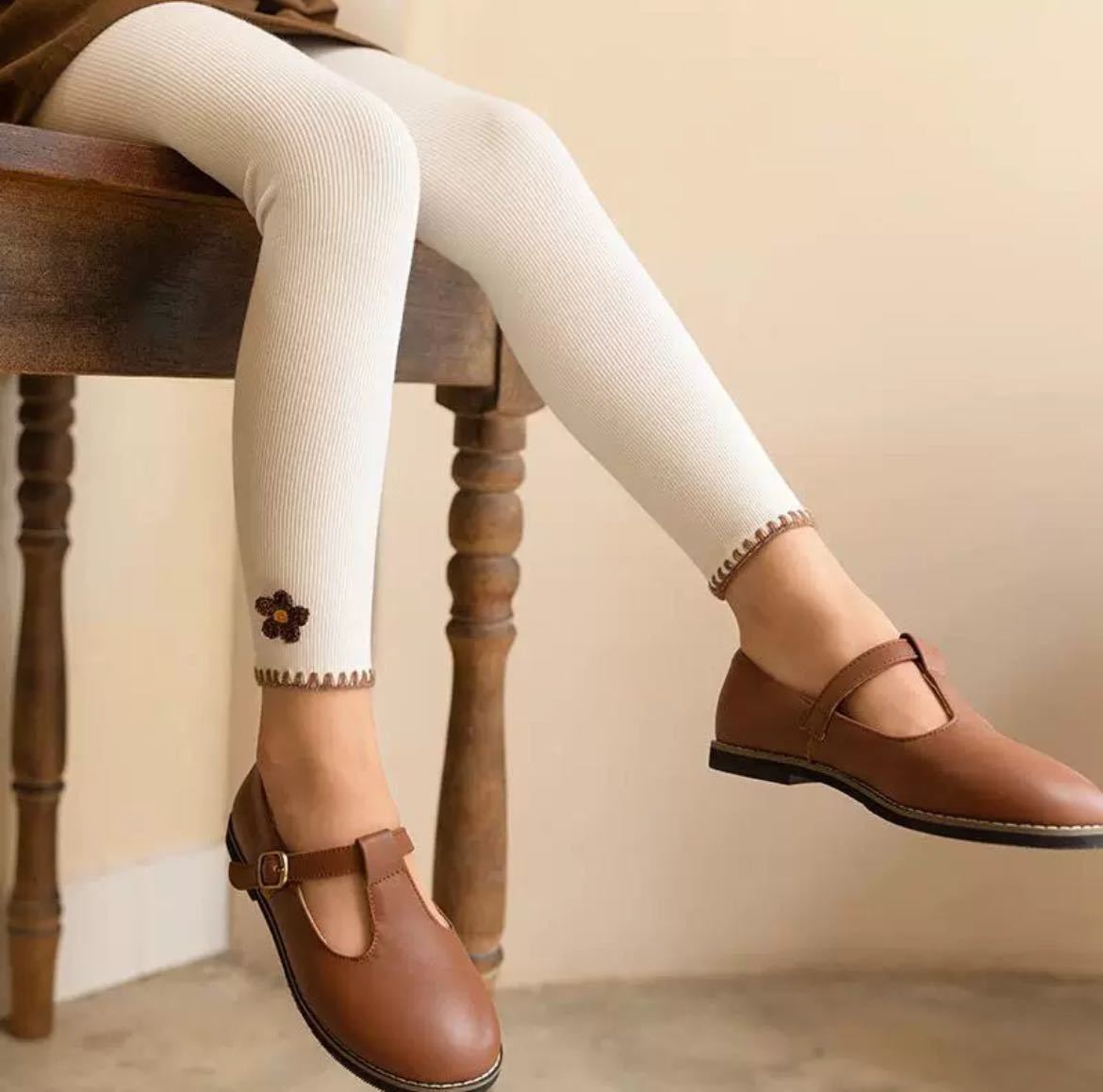 - かわいい花柄 ワッフルコットン 子供用リブレギンス スパッツ キッズ 女の子 150