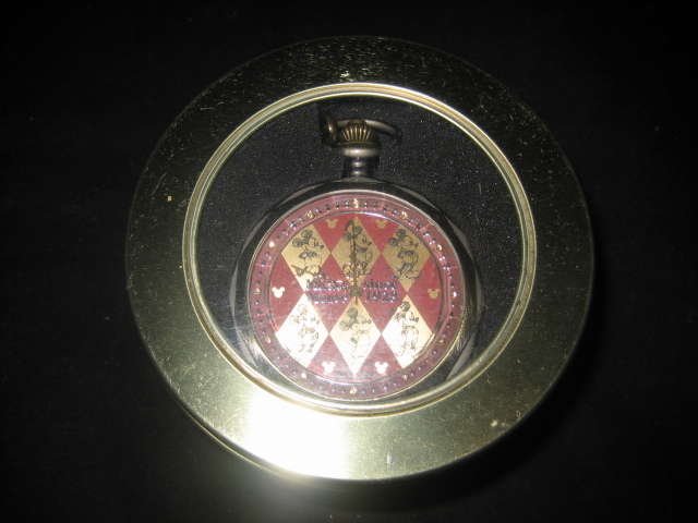 - ミッキー&ミニー ハイクオリティ カットクリスタル ビッグフェイス 懐中時計 柄赤金