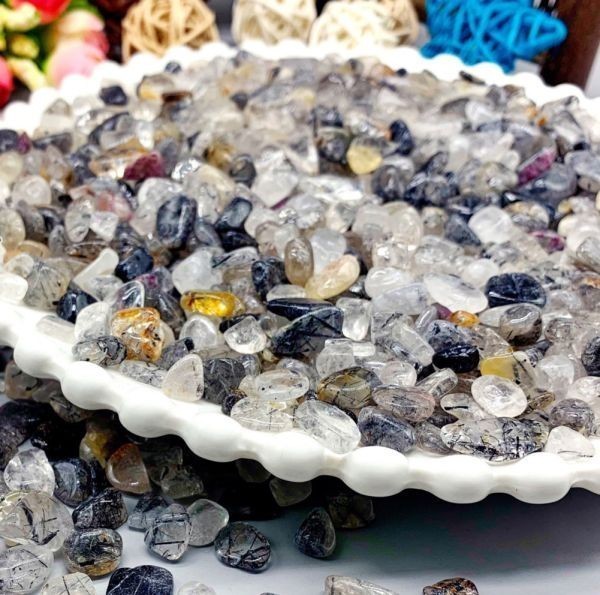 - 浄化 さざれ 高品質 500g 天然石 パワーストーン 7-9mm ブラックルチルクォーツ 金紅石入り水晶 Black Rutile Quartz