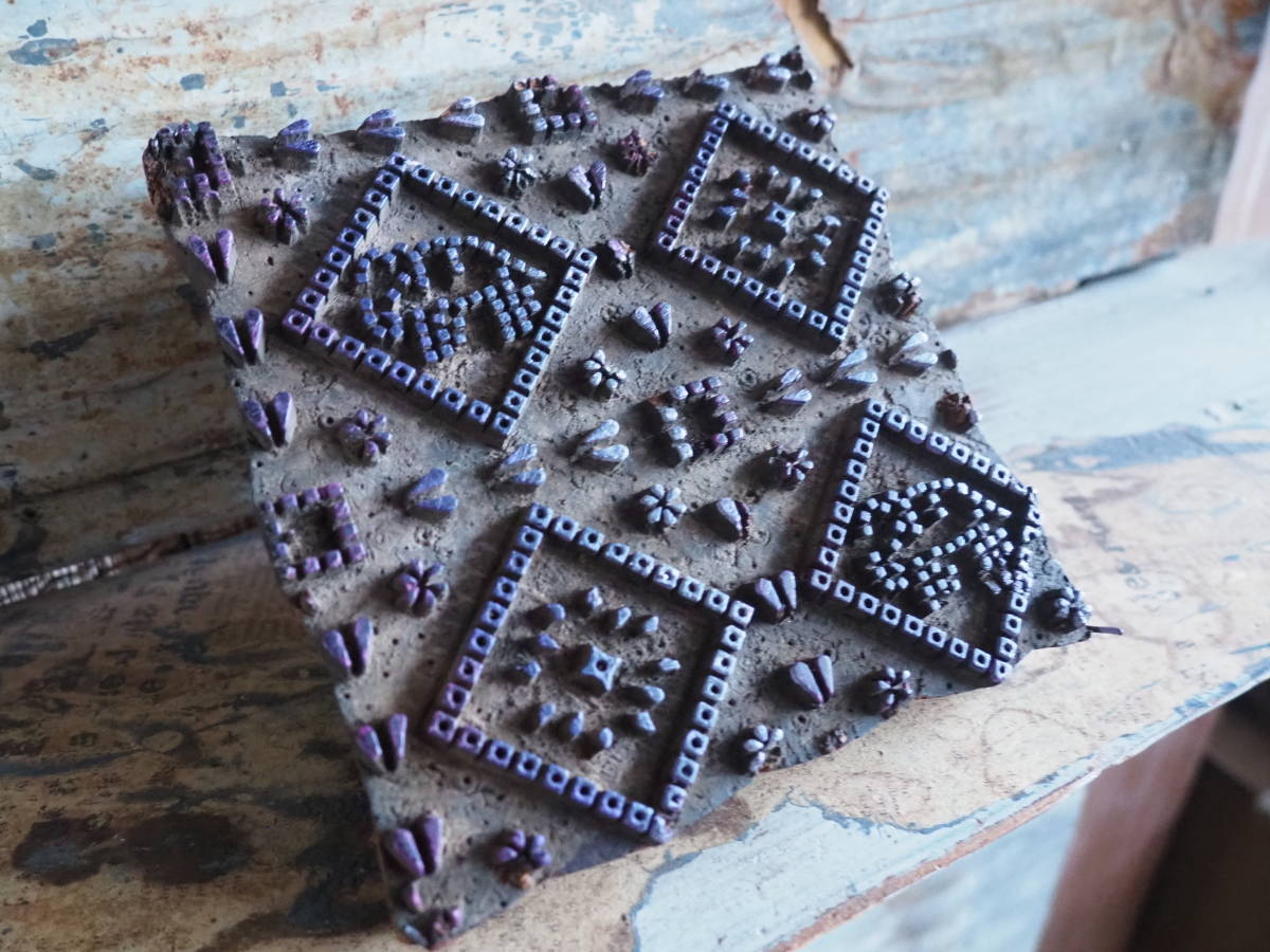 - 【インド更紗の版木】1930s木版スタンプ古道具アンティーク木彫インテリア骨董サリー古美術プリミティブ判子古木シャビー古布印刷額縁