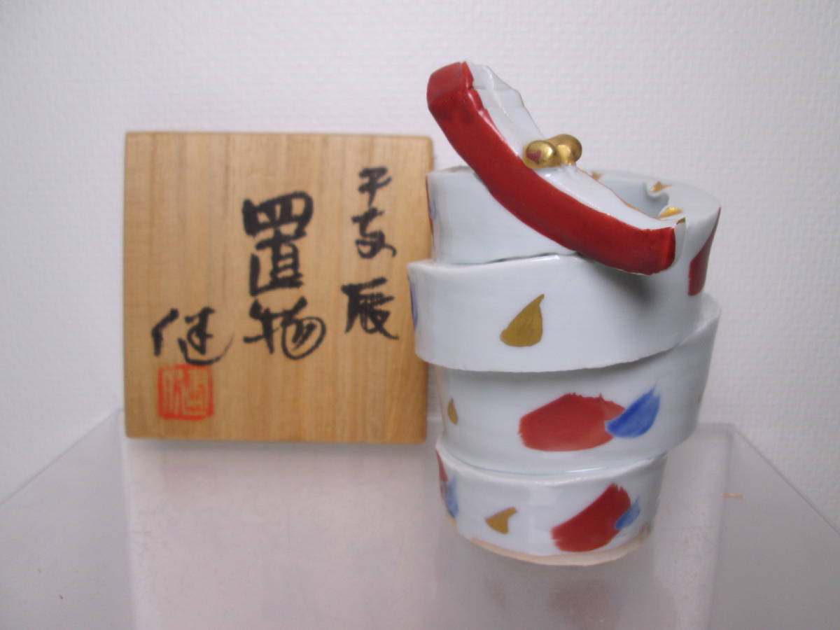 - ☆九谷焼 現代陶芸 人気個展作家 赤地健 『干支 辰』色絵金彩 龍の置物 共箱 花活けにも