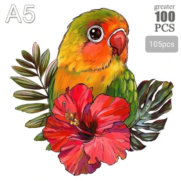 - 鳥の雑貨 HANAKO 3D木製パズル ボタンインコ A5サイズ