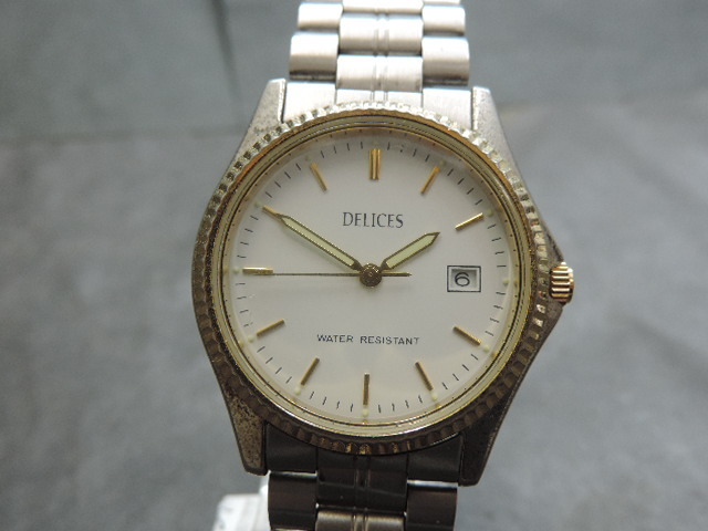 - ★DELICES★ クオーツ サイズ:約42,7㎜・ベルト:約21㎝・調整可 実動品・ジャンク扱い