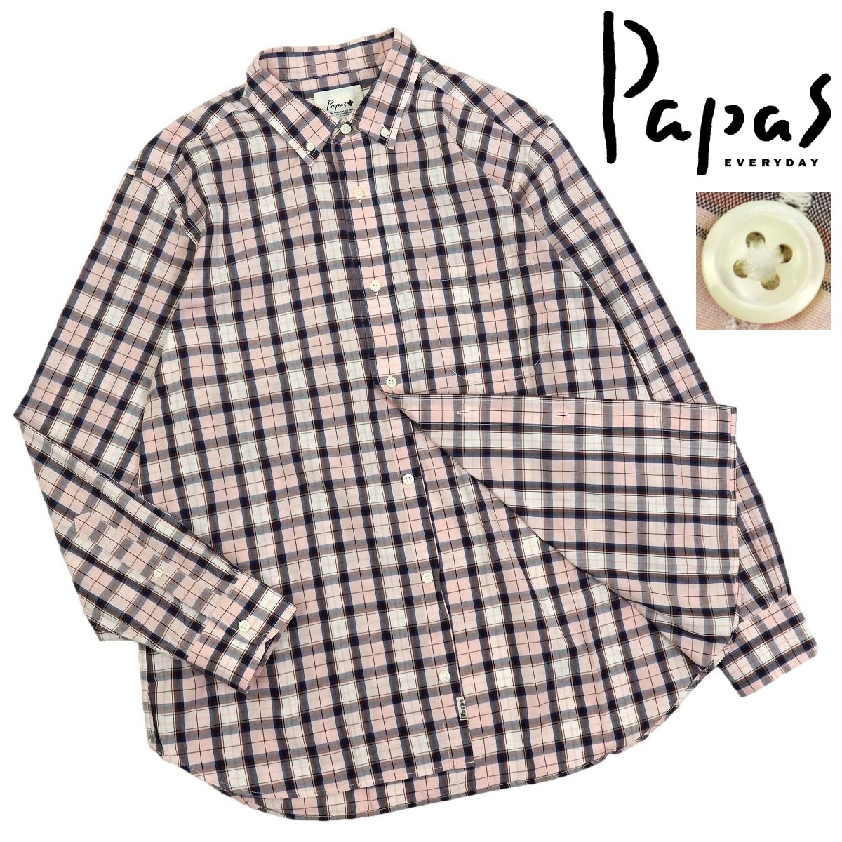 - 【B2678】【極美品】【ビッグサイズLL】Papas+ パパスプラス 長袖シャツ ボタンダウンシャツ チェック ネイビー×ピンク