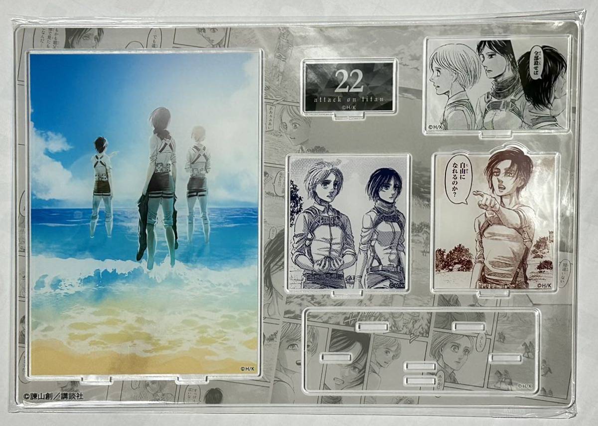 - ☆進撃の巨人※エレン※ミカサ※アルミン※オンライン展覧会※第22巻※海の向こう・壁の向こう※アクリルジオラマスタンド☆