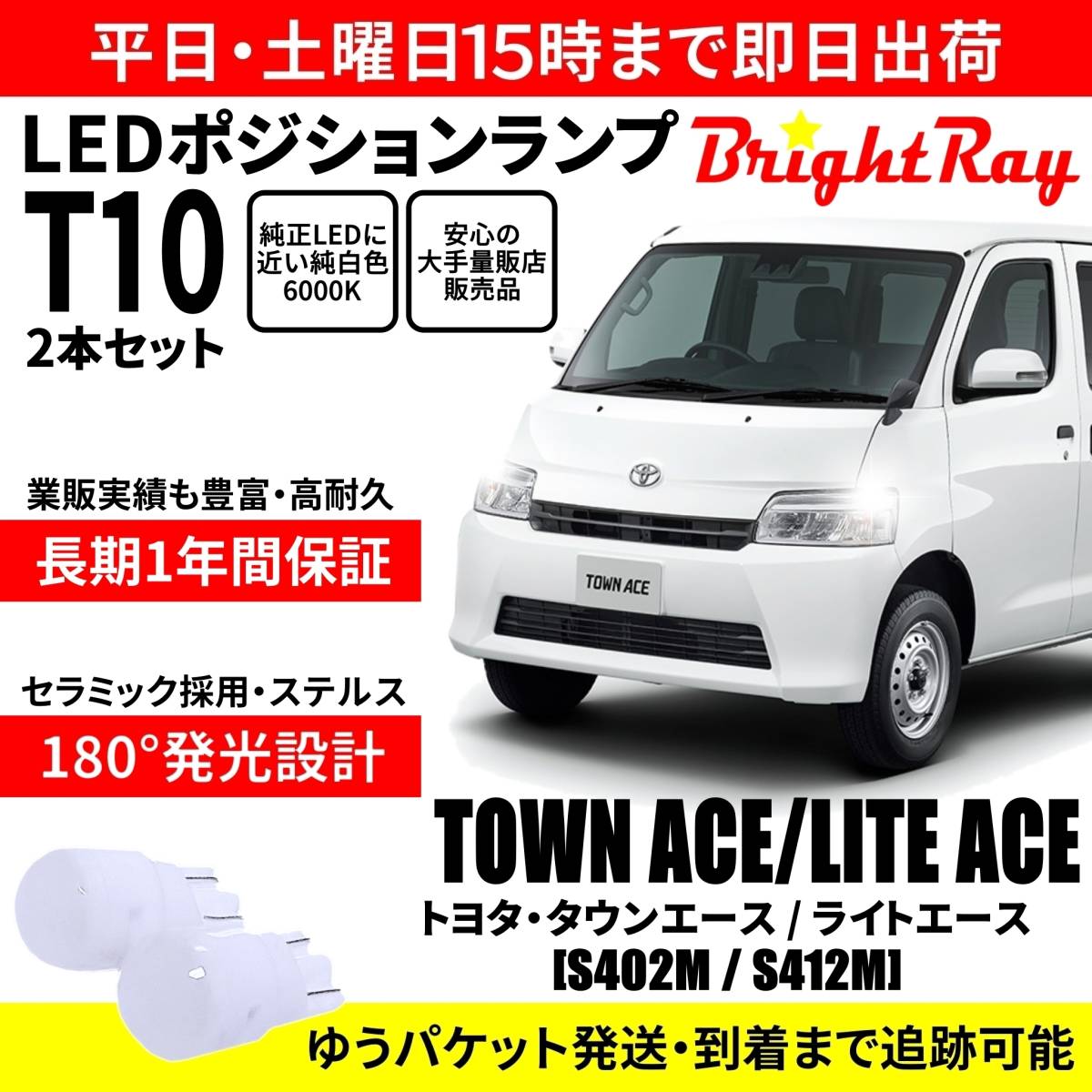 - 送料無料 1年保証 トヨタ タウンエース ライトエース S402M S412M 前期 BrightRay T10 LEDバルブ ポジションランプ 車幅灯 2本セット
