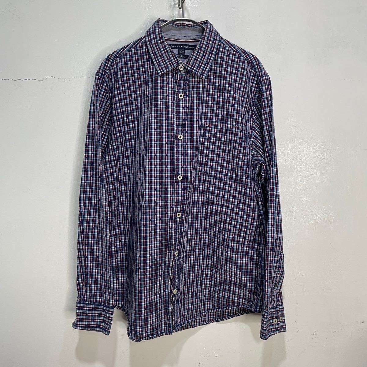 - 送料無料☆TOMMYHILFIGER☆トミーヒルフィガー☆チェック柄長袖シャツ☆ドット柄☆ブルー系☆XL☆L23