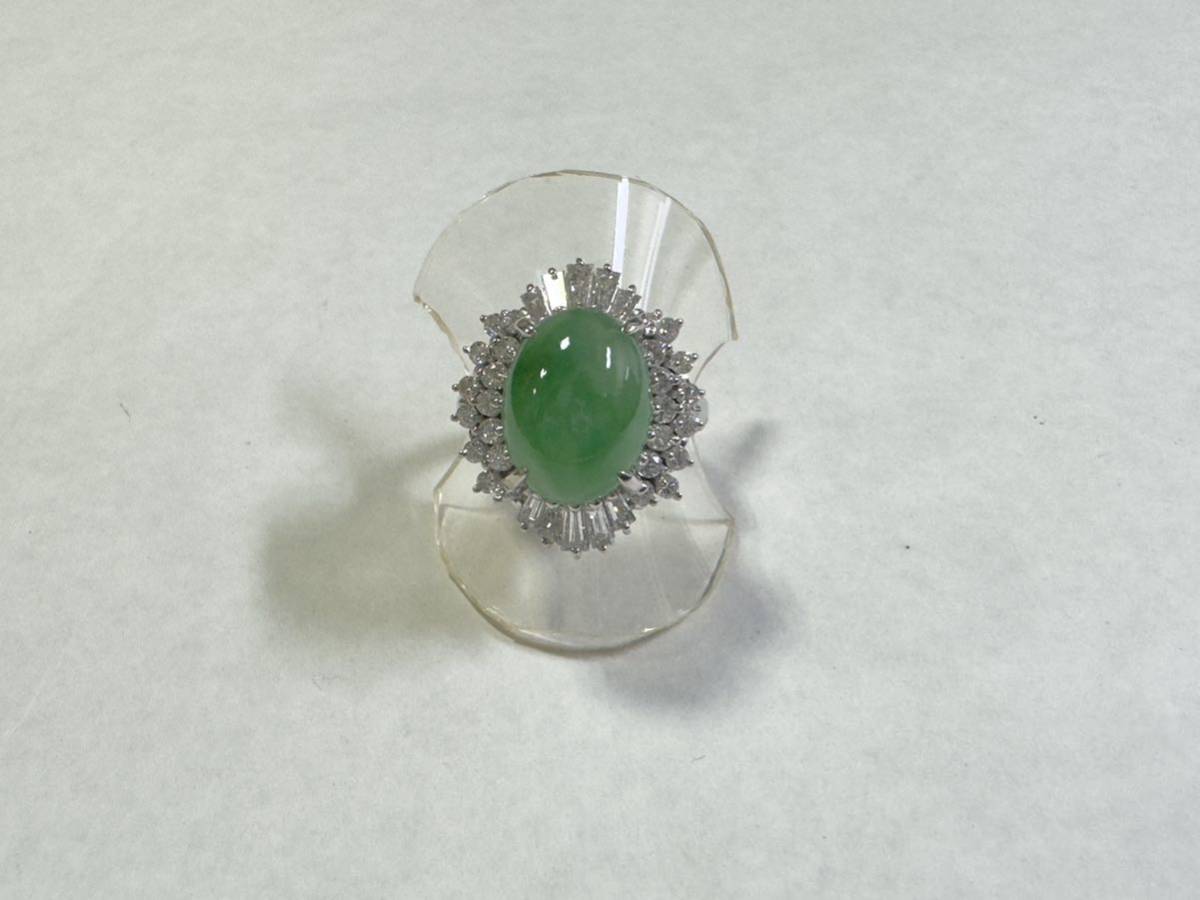 > 【質屋 尾張屋商店 東京】 ☆鑑別結果付☆ Pt900 ヒスイダイヤリング レディース #13 カボション 1.40ct ジェイダイト