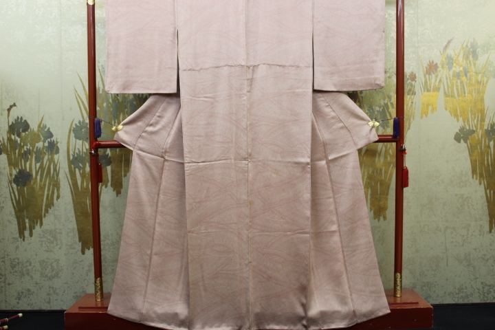 > きもの今昔6168 小紋のきもの 広衿袷手縫い仕立て 正絹梨地綸子生地 和名丁子色芝垣根小紋 身丈160㎝