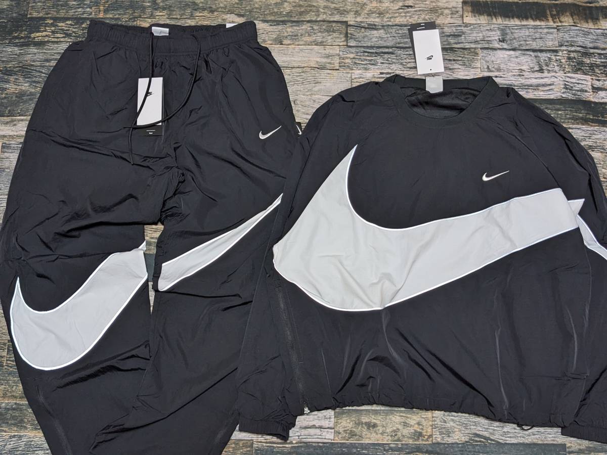 > 残少 XL ナイキ ビッグ スウッシュ ウーブン 上下セット 検 メッシュ裏地 プルオーバー クルー ジャケット ナイロン パンツ ブラック/黒