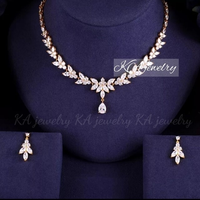 - 2点 セット キュービックジルコニア ゴールド イヤリング ( ピアス )& ネックレス 結婚式 ブライダル ウェディング アクセサリー
