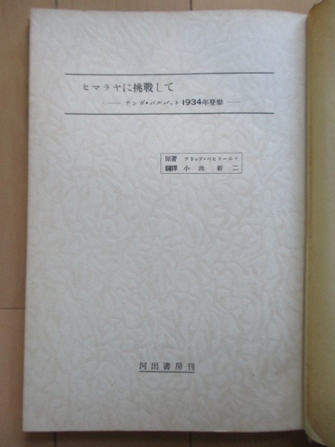 - ◇「ヒマラヤに挑戦して ナンガ・パルバット 1934年 登攀」 フリッツ・ベヒトールト 小池新二 昭和12年(1937年) 河出書房 ※裸本