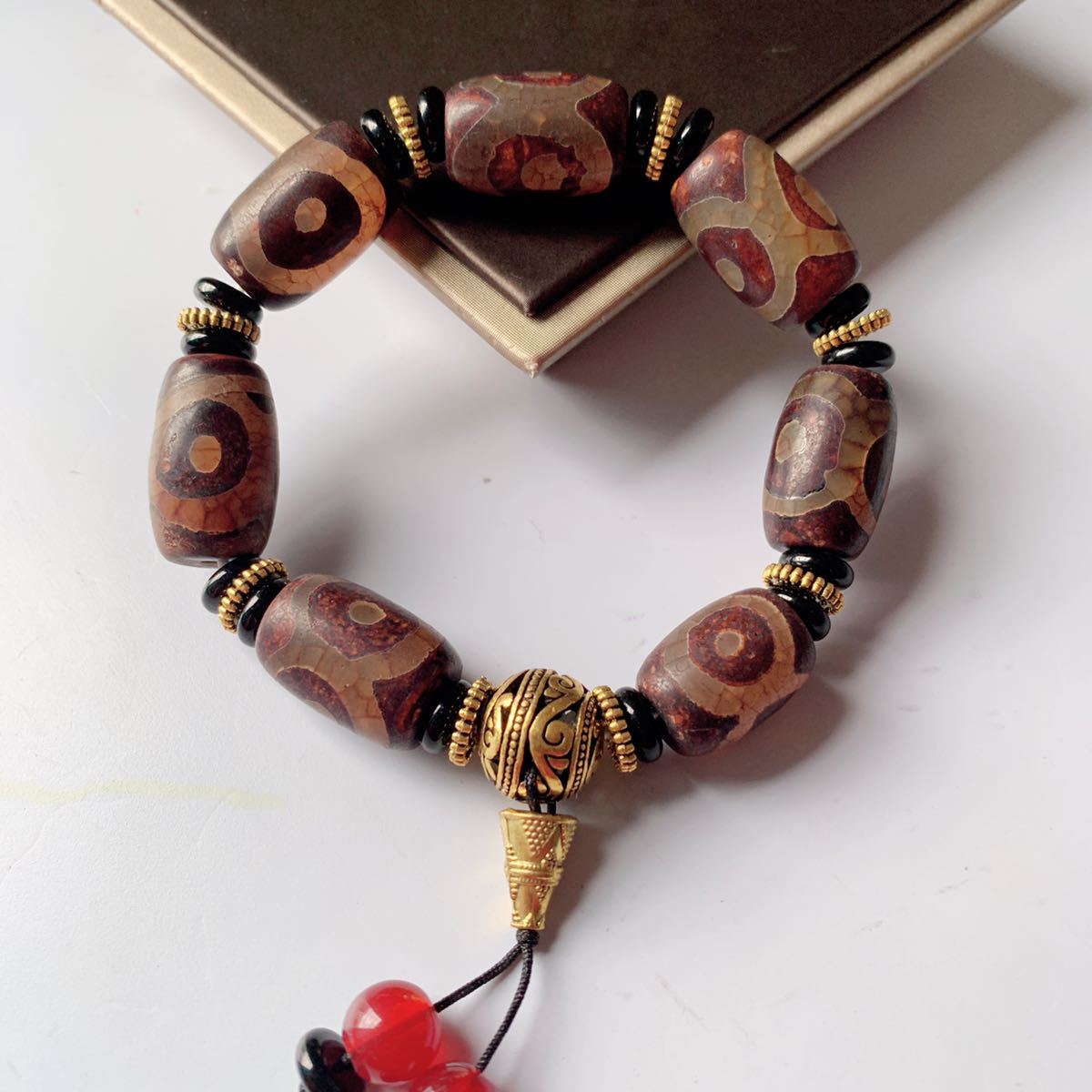 > ◇三目天珠◇瑪瑙◇ブレスレット◇男女兼用◇パワーストーン◇天然石◇巾着袋付き◇プレゼントにも023B120501