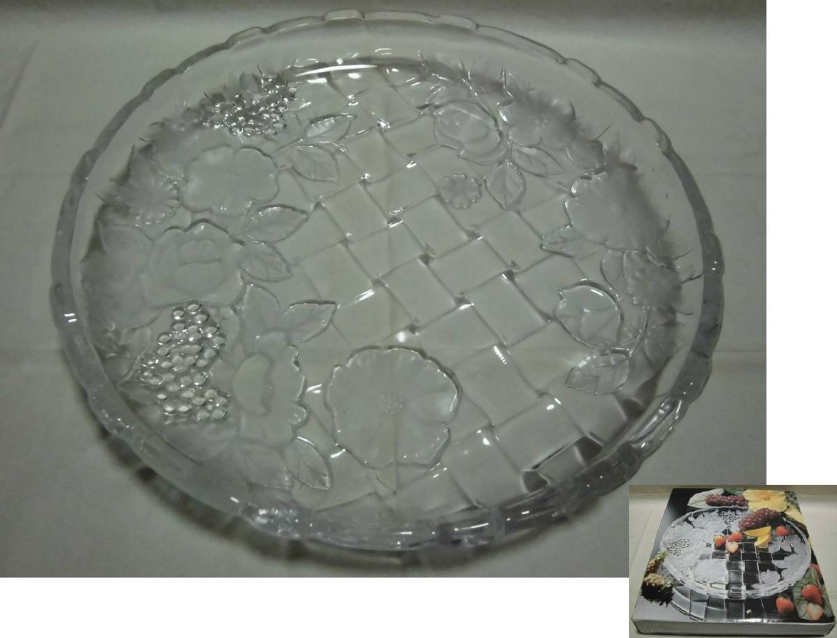 - 大皿 盛皿 SOGA GLASS 曽我硝子 NAPOLI SNOW FLOWER 箱入り ぶどう 花柄 プレート ガラス製 丸皿 31.5cm ケーキ フルーツ 工芸品