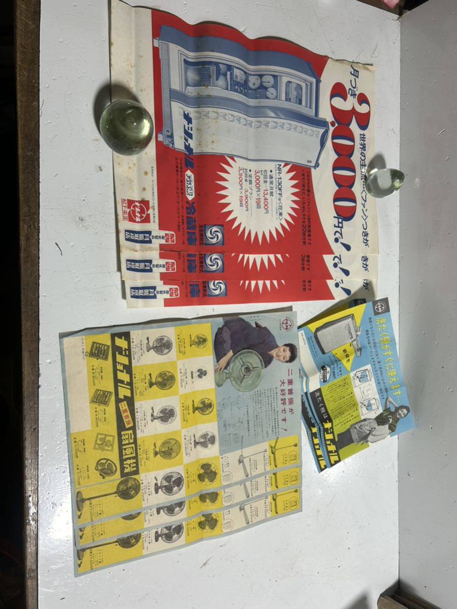 - レトロ ナショナル チラシ 3枚づゝカタログ 洗濯機 扇風機 冷蔵庫 昭和 レア