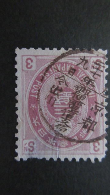- 【小型丸一縦書印】新小判3銭 27.-.9/京都/郵便電信支局/今出川