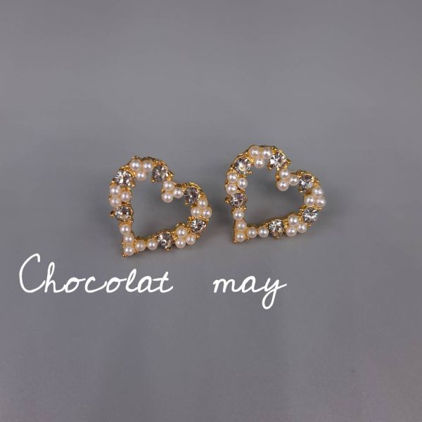 - ピアス ハート ガーリー パールビーズ ラインストーン ゴールド ゴージャス エレガント パーティー ファッション 小物