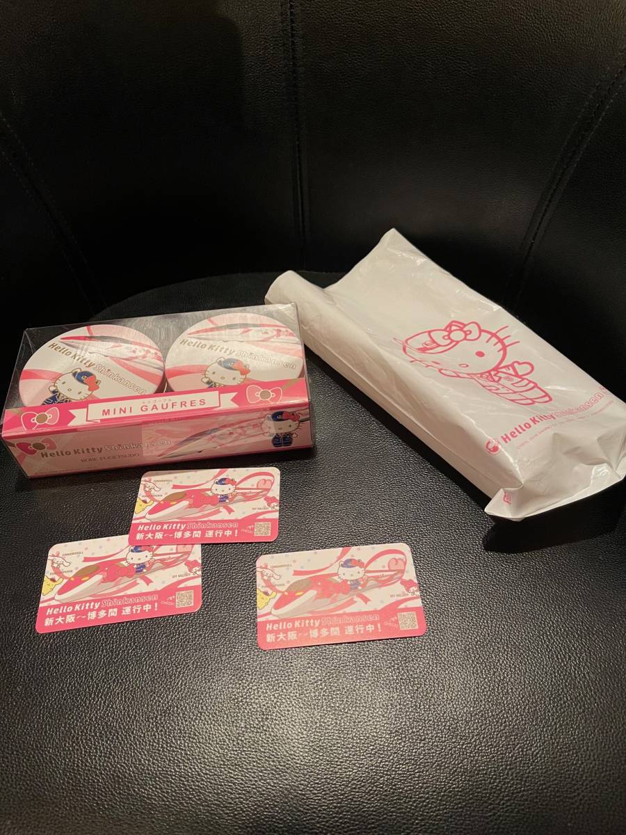 - ハローキティ新幹線 ミニゴーフルの缶と時刻表3枚