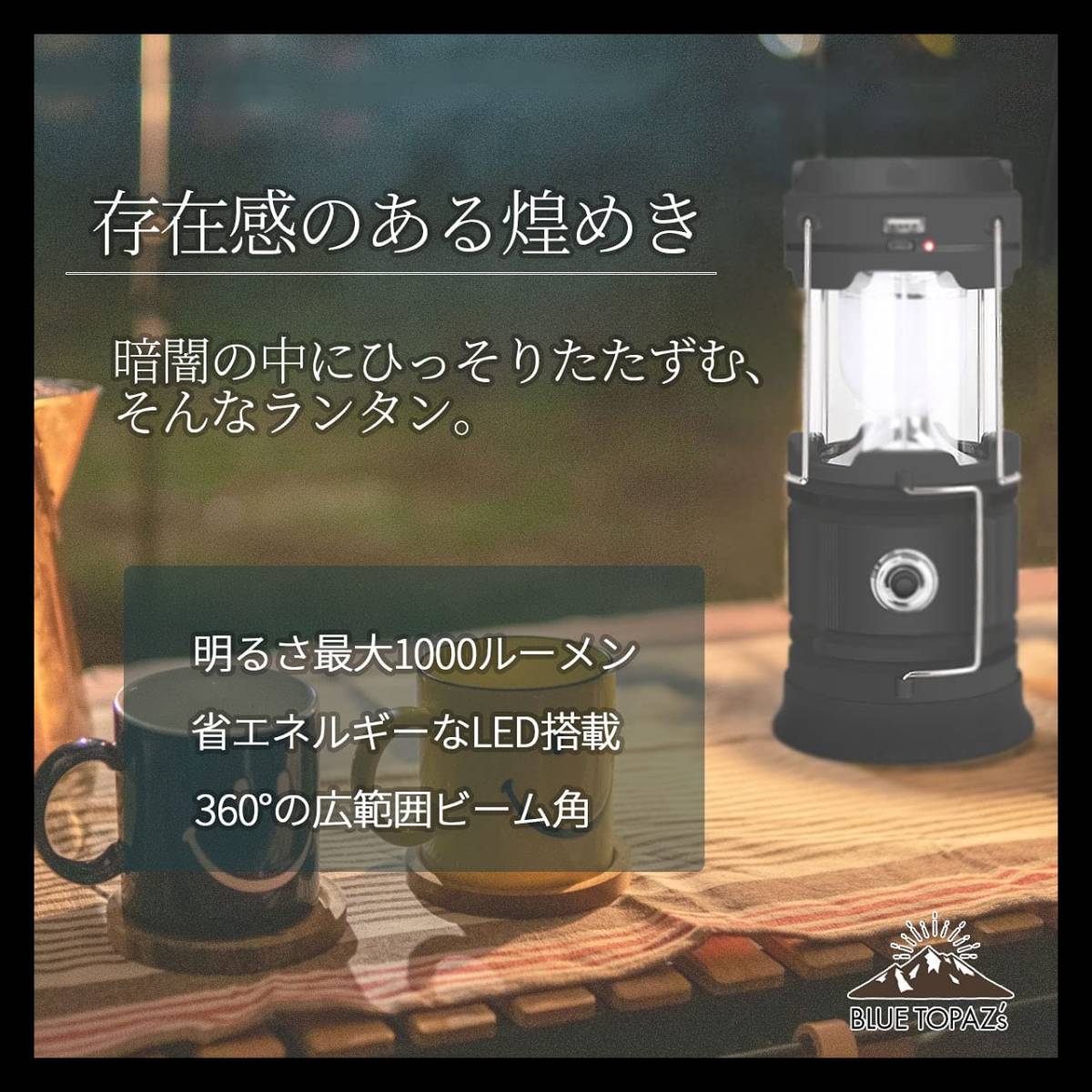 - LED ランタン キャンプ ライト 懐中電灯 折り畳み式 ブラック