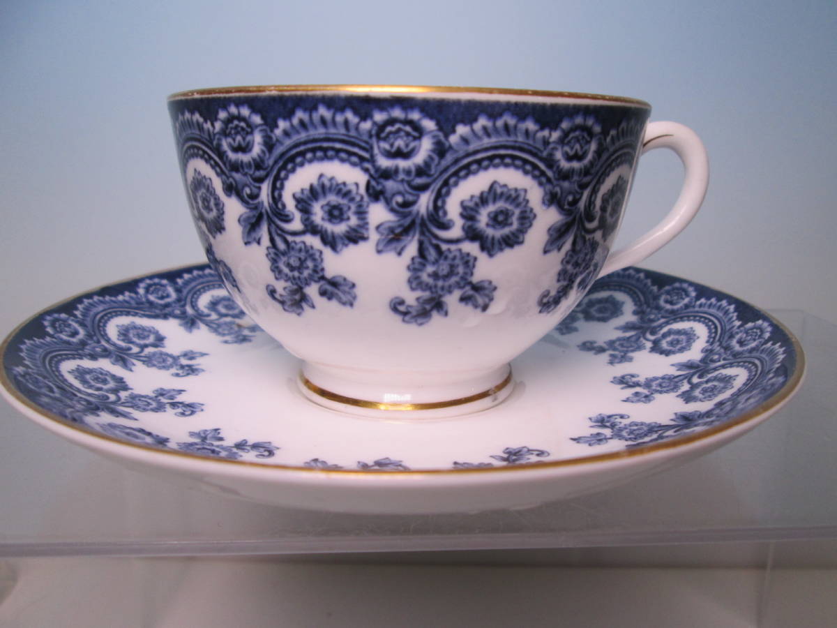 - ☆西洋アンティーク・ロイヤルウースター 金彩ブルー 花文のカップ&ソーサー ヴィンテージ
