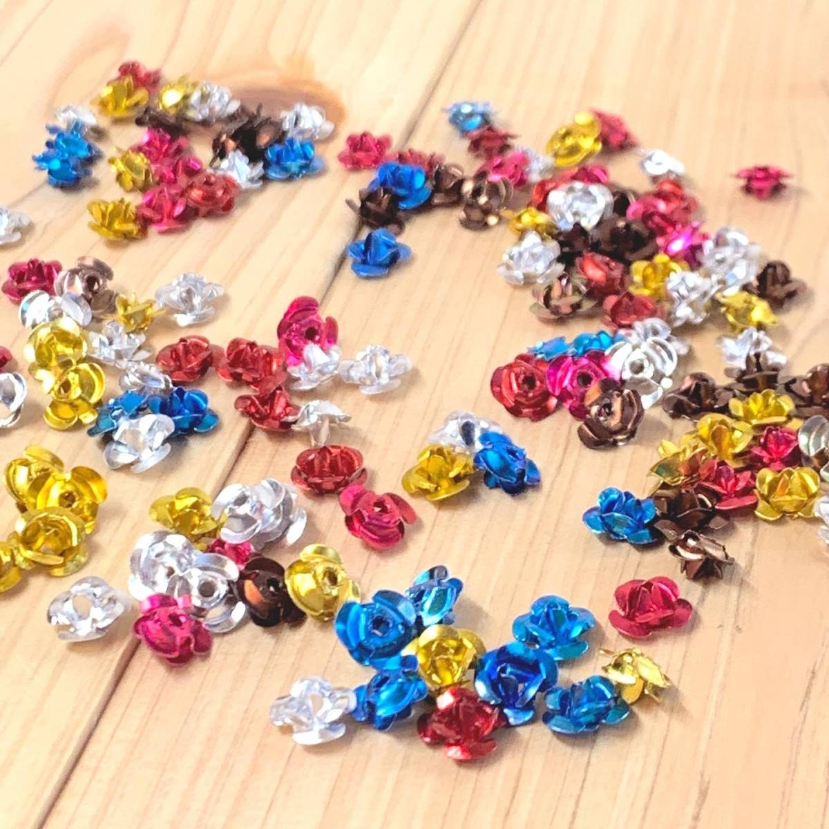- ハンドメイド クラフト パーツ チャーム メタルパーツ バラ 6mm 約10g(約230個)ミックス