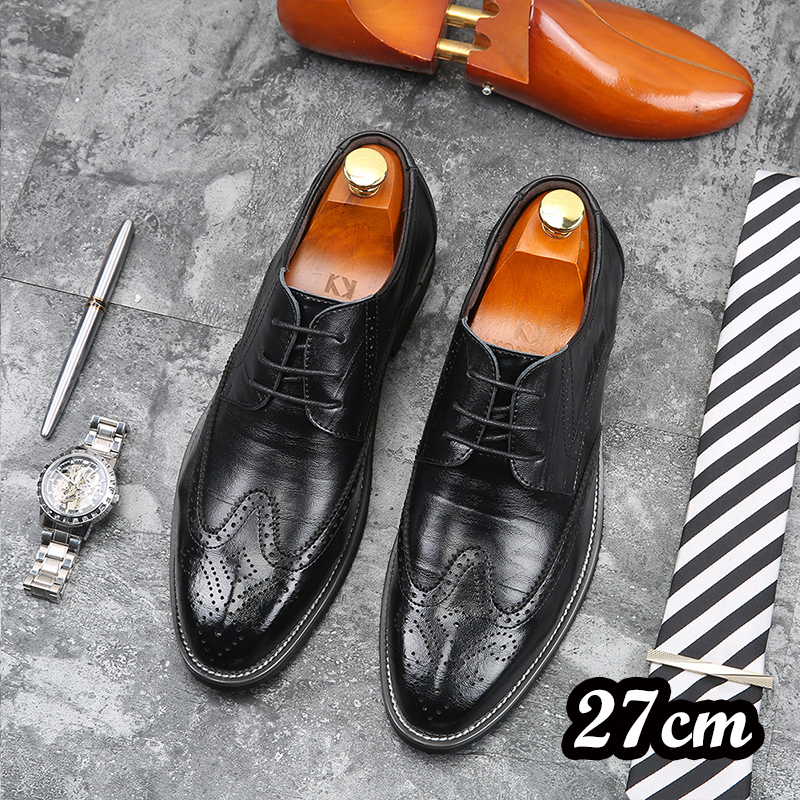 - ☆メンズシューズ ビジネスシューズ 男靴 紳士靴 就活 革靴 PU革 イギリス風 ウイングチップ レスアップ 走れる 通勤学 27cm