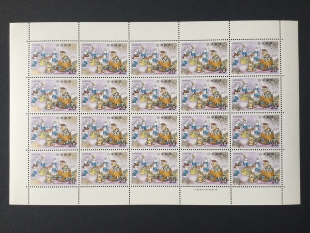 > 昔ばなしシリーズ 第7集 ねずみの浄土 もてなし 1シート(20面) 切手 未使用 1975年