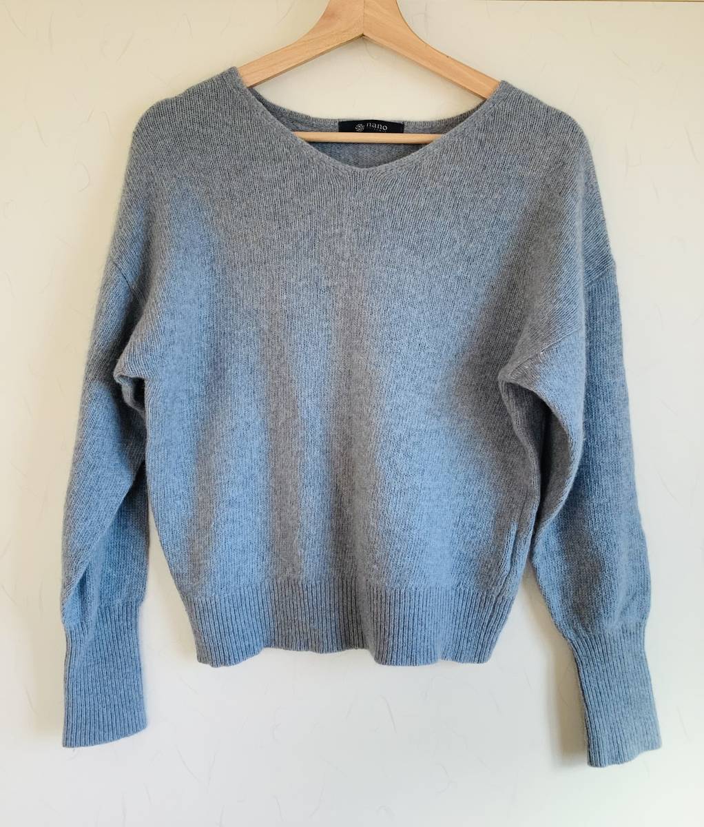 - 【美品!】ナノユニバース nano・universe レディース Fサイズ 水色 ニット アウター Vネック フリーサイズ 軽量 薄い 温かい
