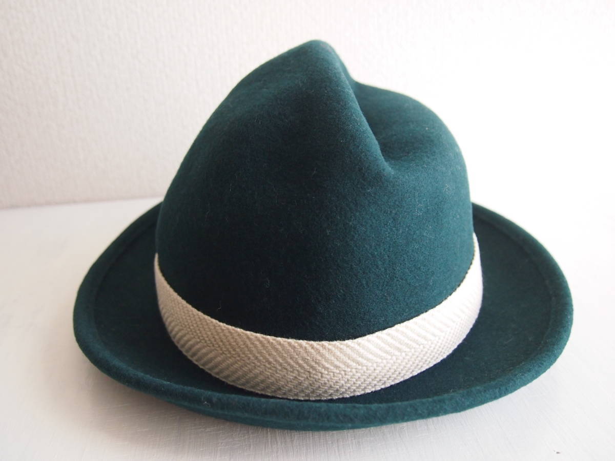 - 新品17,000円 58cm 日本製 カミラフカ KAMILAVKA ハット ベルトリボン 中折れハット 帽子 フェルトハット グリーン 緑色