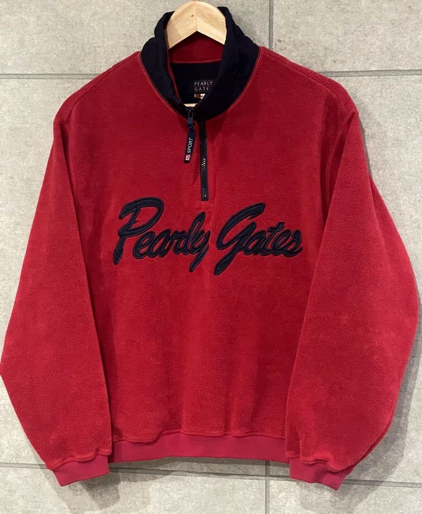 - 希少デザイン! PEARLY GATES パーリーゲイツ ハーフジップ フリース ジャケット プルオーバー 赤 Sサイズ ゴルフウェア ○ 新規×