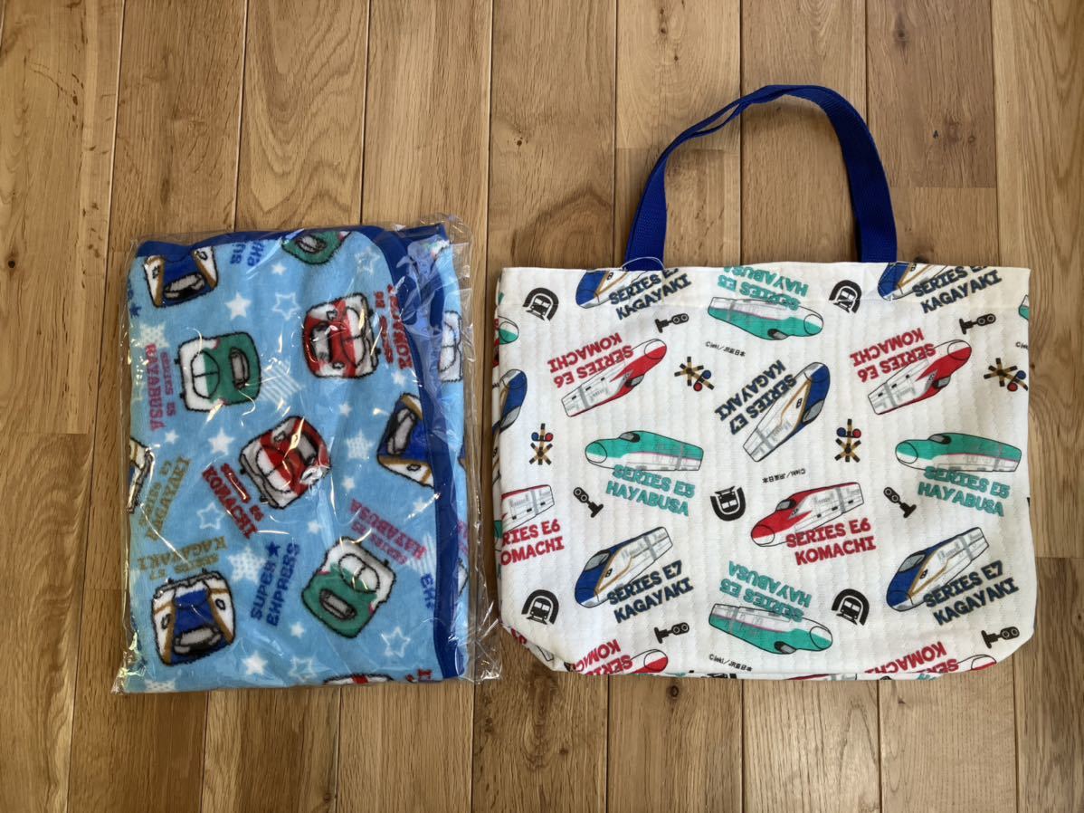 - 新品タグ無し 新幹線 薄手ブランケット キルトバッグ セット