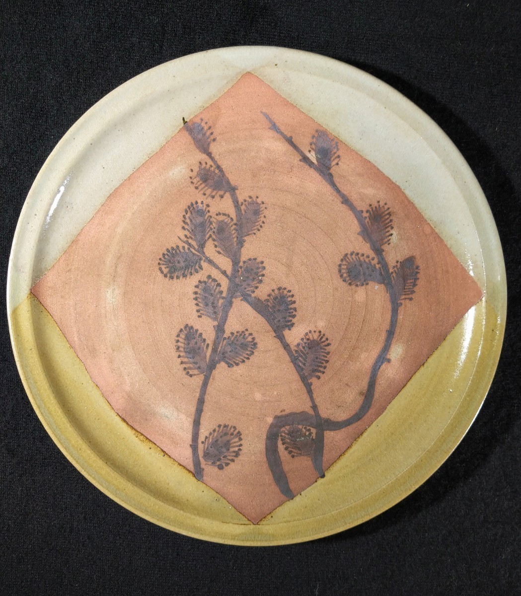 - 河合卯之助 色絵 草文 22cm 中皿 華道具 茶道具 向日窯 京焼 b-11a2982