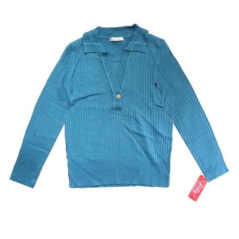 - 新品 GIVORS 襟付き 長袖 ニット セーター レイヤード L 11 青 緑 レディース トップス