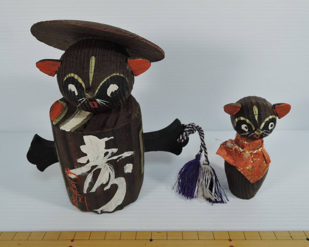 - ☆G12 昭和レトロ■屋島 タヌキ/狸/たぬき ペア 木製 置物■太三郎狸/香川県高松市