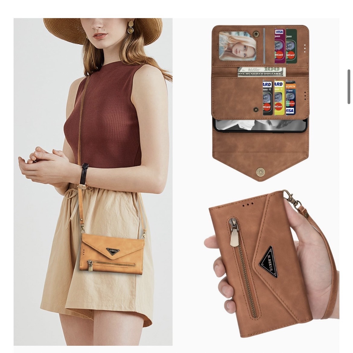 - Cavor Galaxy S23 5G 対応 スマホ ケース 肩掛け 首かけ 斜めがけ PUカバー 封筒のデザイン 背面 財布型 ケース【ライトブラウン】