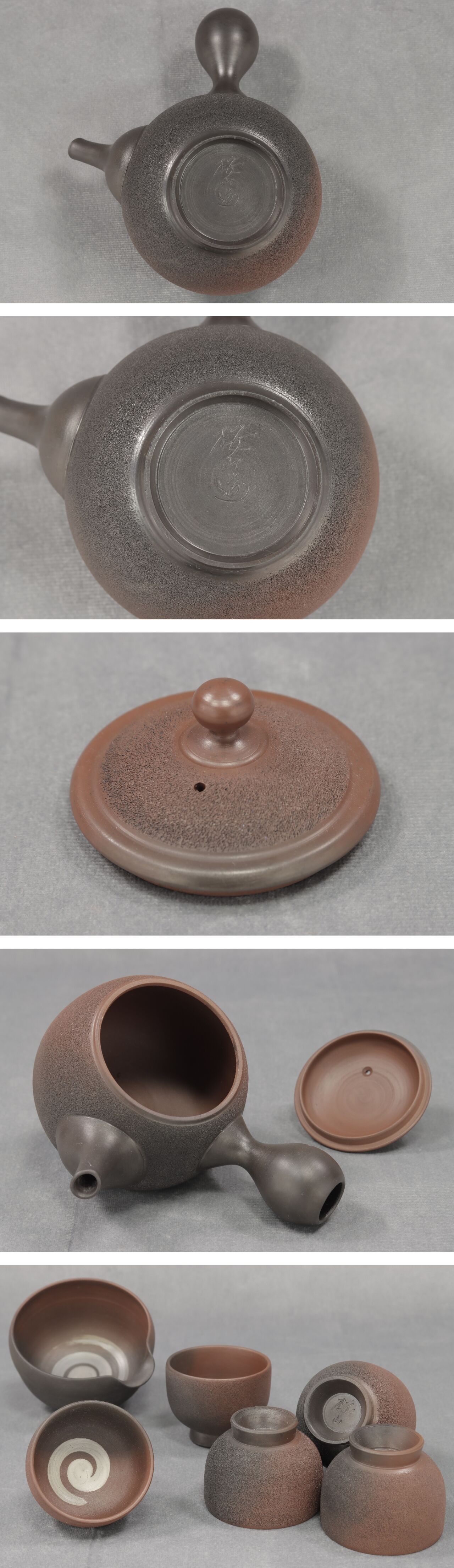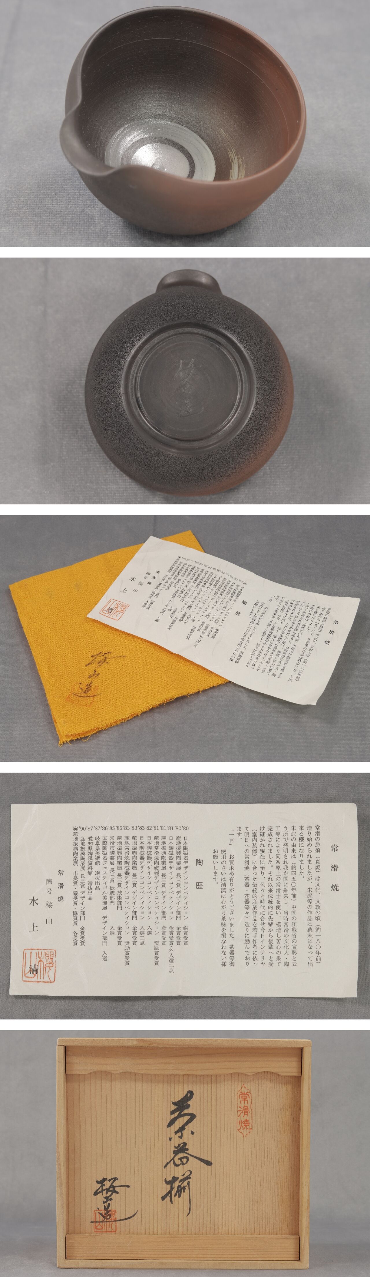 - 天地堂《煎茶器 玉露茶器》未使用 常滑焼 桜山造 名工 水上清 窯変 藻掛 急須 茶注 湯冷 煎茶碗 茶器揃 共箱 栞 仕覆